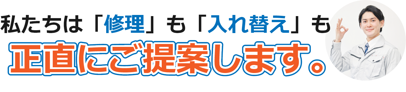 「修理」と「入替」両方の見積を無料でご提示しますので、